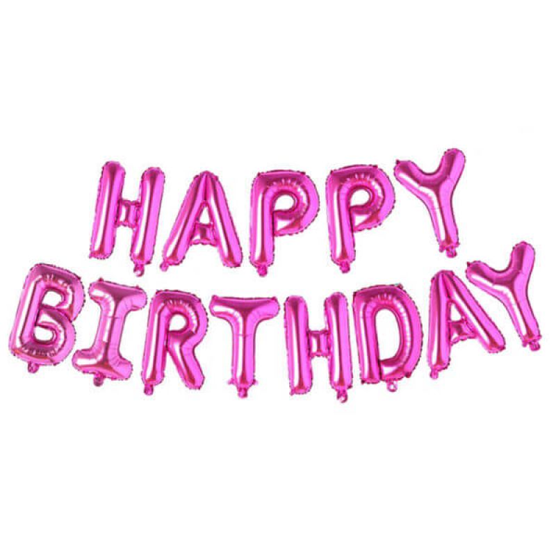 13-Piece Happy Birthday Letters Foil Balloon Pink Set 16 Inch