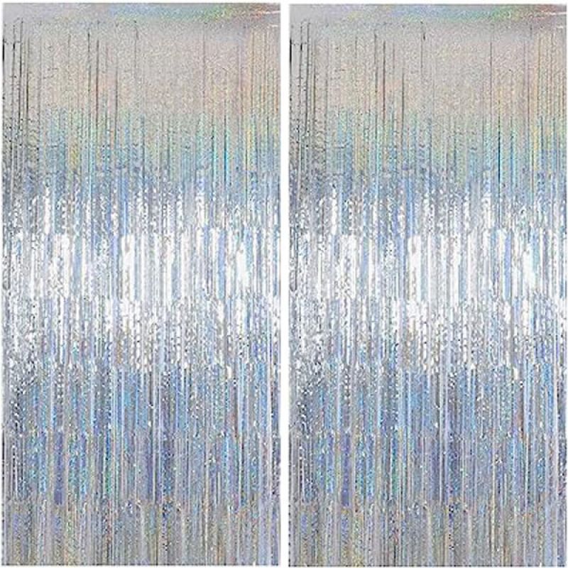 2-Pcs Silver Foil Metallic Tinsel Curtain Silver 3.28feet