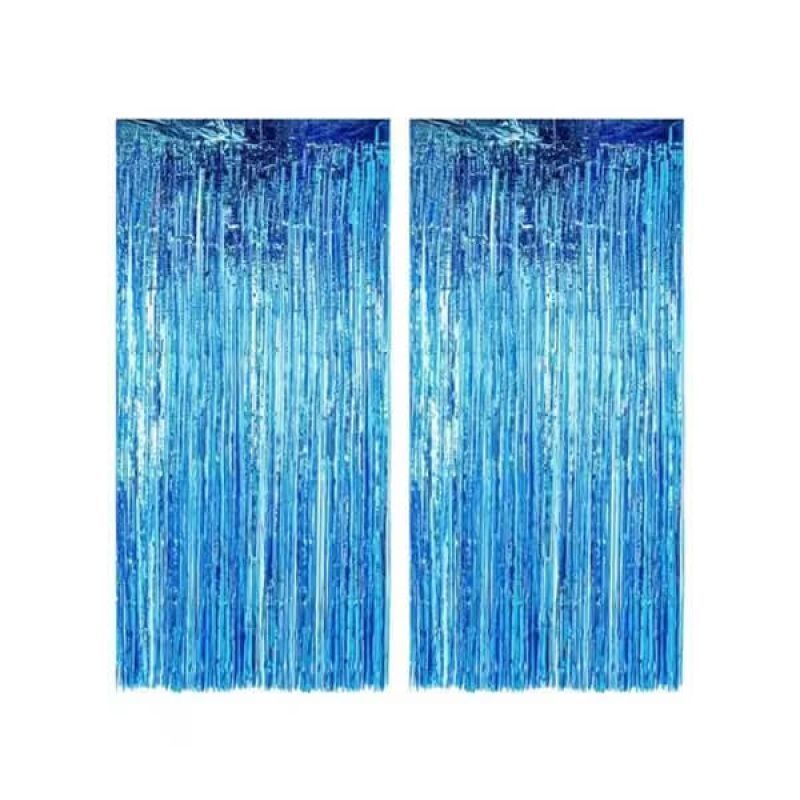 2-Piece Foil Metallic Tinsel Curtain Blue 6.56 x 3.28feet