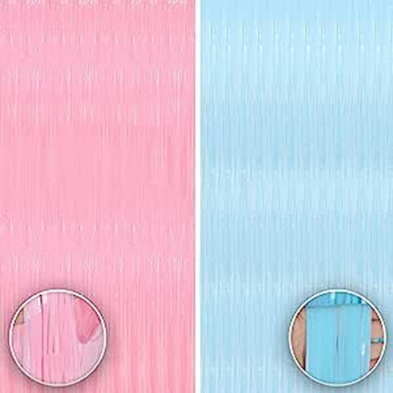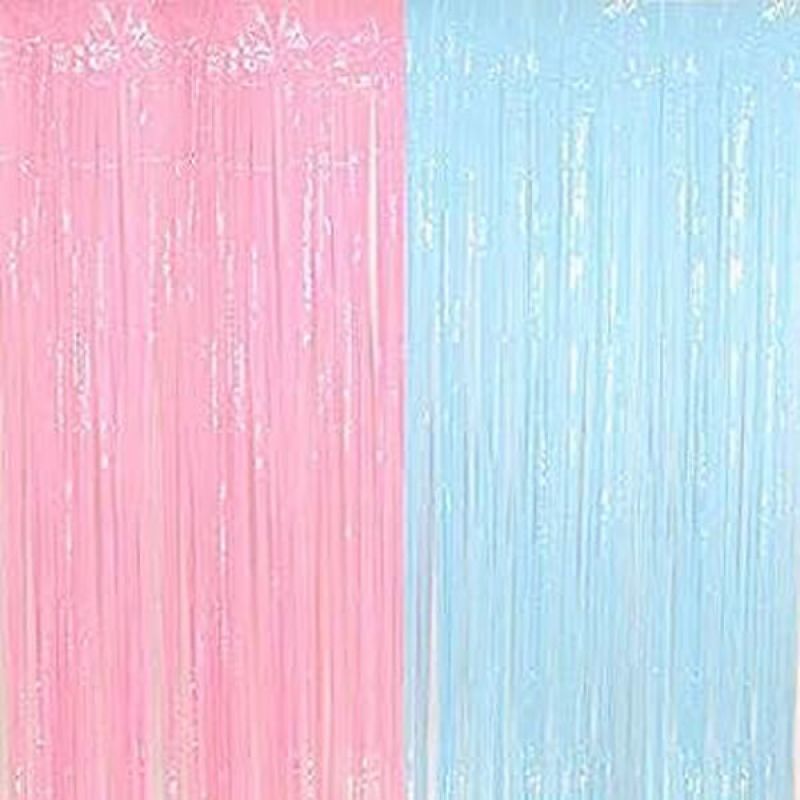 2-Piece Pink and Blue Pastel Foil Fringe Curtain