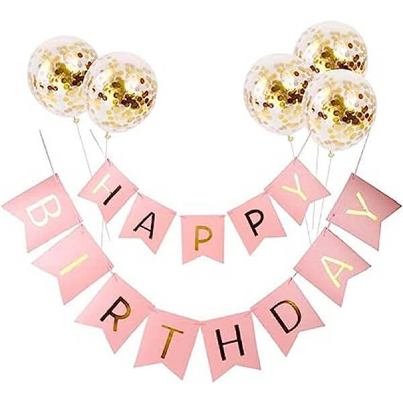 5-Piece Happy Birthday Balloon Set With Hanging Flag