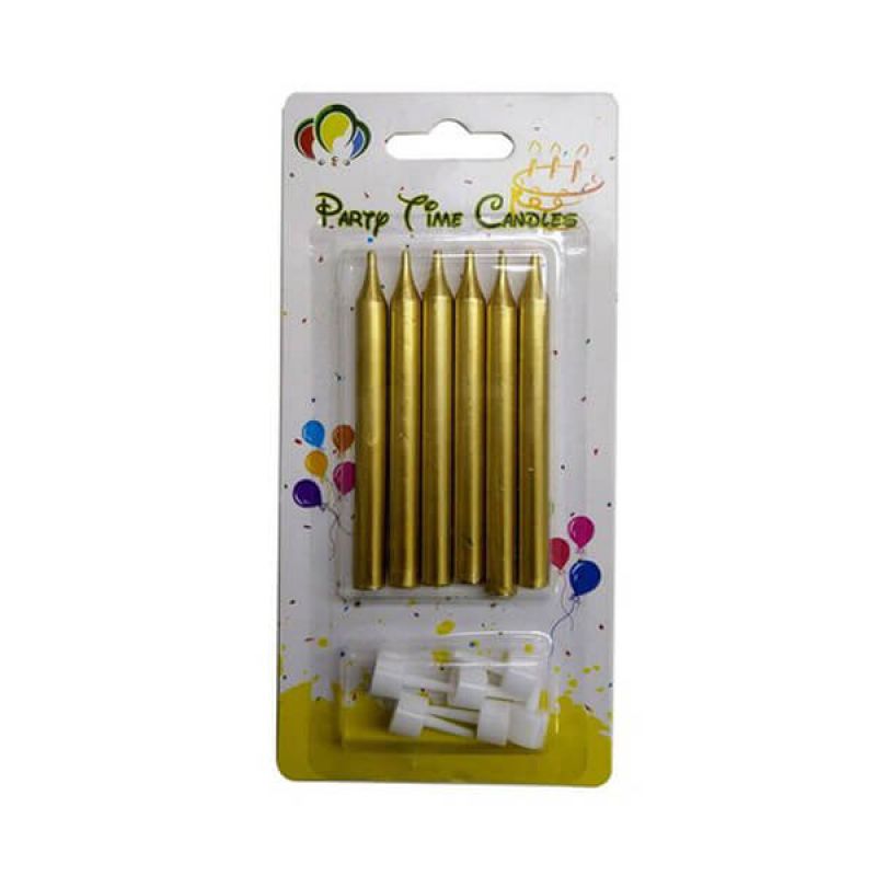 6-Piece Gold Unscented Birthday Candle With Stand