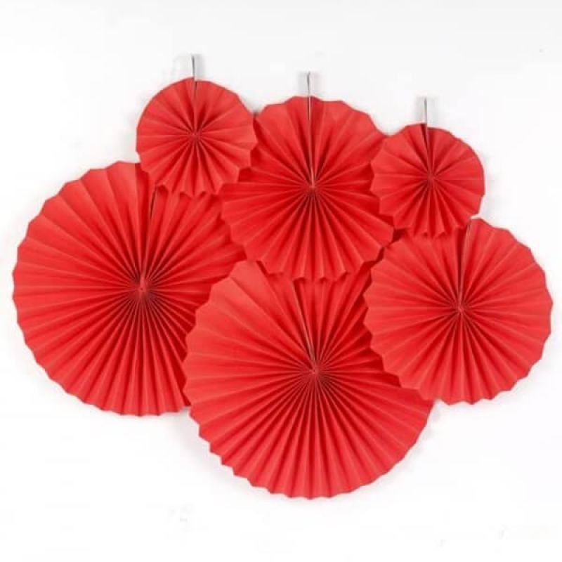 6-Piece Red Paper Fan Flower Hanging Banner Set