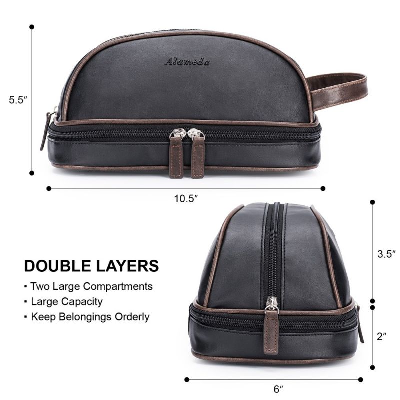 സാംബോക്സിന്റെ അലമേഡ ഡോപ്പ് കിറ്റ് ഒരു മികച്ച ടോയ്ലറ്ററി കിറ്റാണ്, ഇത് യാത്രയ്ക്ക് അനുയോജ്യമാണ്, എല്ലാ അവശ്യവസ്തുക്കൾക്കും അനുയോജ്യമായതും സ്റ്റൈലിഷുമാണ്. വെജിറ്റേറിയൻ ലെതർ ഇതിന് ഒരു പ്രീമിയം ലുക്ക് നൽകുന്നു. മനോഹരമായ കറുപ്പ് തവിട്ട് നിറം, നിങ്ങളുടെ ലഗേജിനൊപ്പം ഒരു വാനിറ്റി കിറ്റായി കൊണ്ടുപോകുമ്പോൾ അല്ലെങ്കിൽ ഇത് നിങ്ങളുടെ ലഗേജുകളിൽ നന്നായി യോജിപ്പിക്കാൻ കഴിയും. വാട്ടർപ്രൂഫ് ഇന്റീരിയർ എല്ലാ ചോർച്ചകളും അടങ്ങിയിരിക്കുന്നുവെന്ന് ഉറപ്പാക്കുന്നു! നിങ്ങളുടെ സൗകര്യത്തിനനുസരിച്ച് കാര്യങ്ങൾ സംഘടിപ്പിക്കുന്നതിന് ഡോപ്പ് കിറ്റ് രണ്ട് വിഭാഗങ്ങളായി തിരിച്ചിരിക്കുന്നു. സ്ത്രീക്കും പുരുഷനും ഒരുപോലെ യോജിച്ചതാണ്. വിന്റേജ് ലുക്ക് ഒരു മികച്ച അവധിക്കാല സമ്മാനമാക്കി മാറ്റുന്നു, ക്രിസ്മസ് സമ്മാനം! സവിശേഷതകൾ • ഉൽപ്പന്ന അളവുകൾ (സെന്റിമീറ്റർ) : 27*15*15 • ഉൽപ്പന്ന ഭാരം (കിലോഗ്രാം) : 0.284 • പായ്ക്കിംഗ് അളവുകൾ (സെന്റിമീറ്റർ) : 27*15*15 • പാക്കിംഗ് ഭാരം (കിലോഗ്രാം) : 0.364 • മെറ്റീരിയൽ : പി യു ലെതർ
