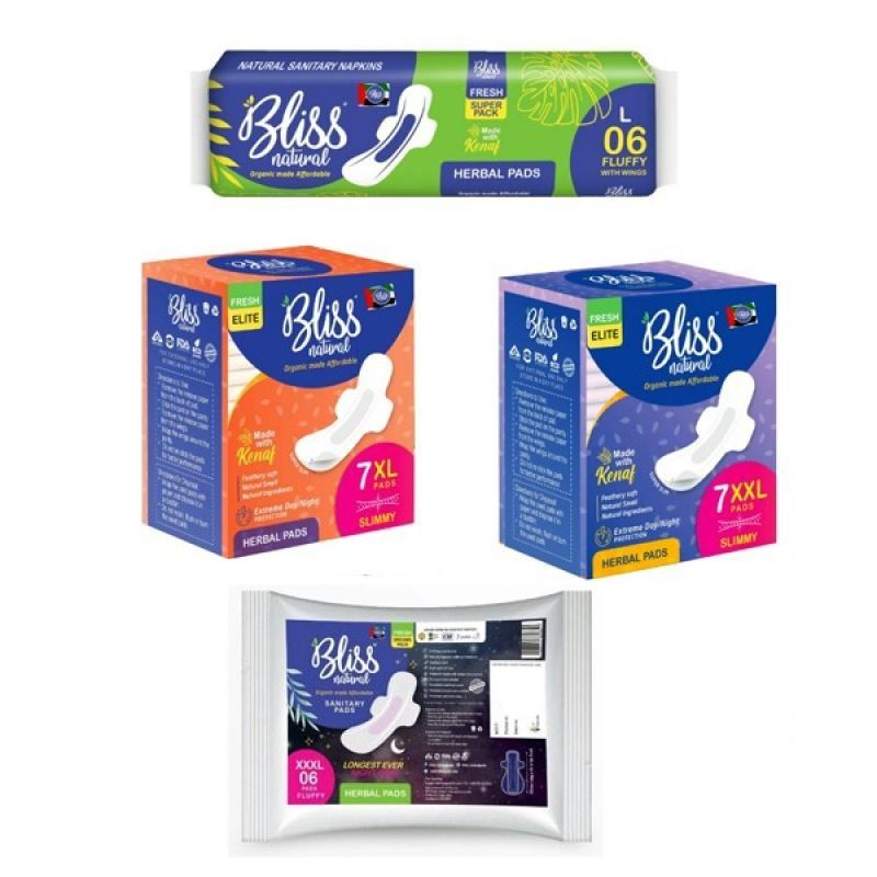 BLISS Natural COMBO (L, XL, XXL, XXXL) സ്ത്രീകൾക്കുള്ള ഓർഗാനിക് സാനിറ്ററി നാപ്കിൻ പാഡുകൾ