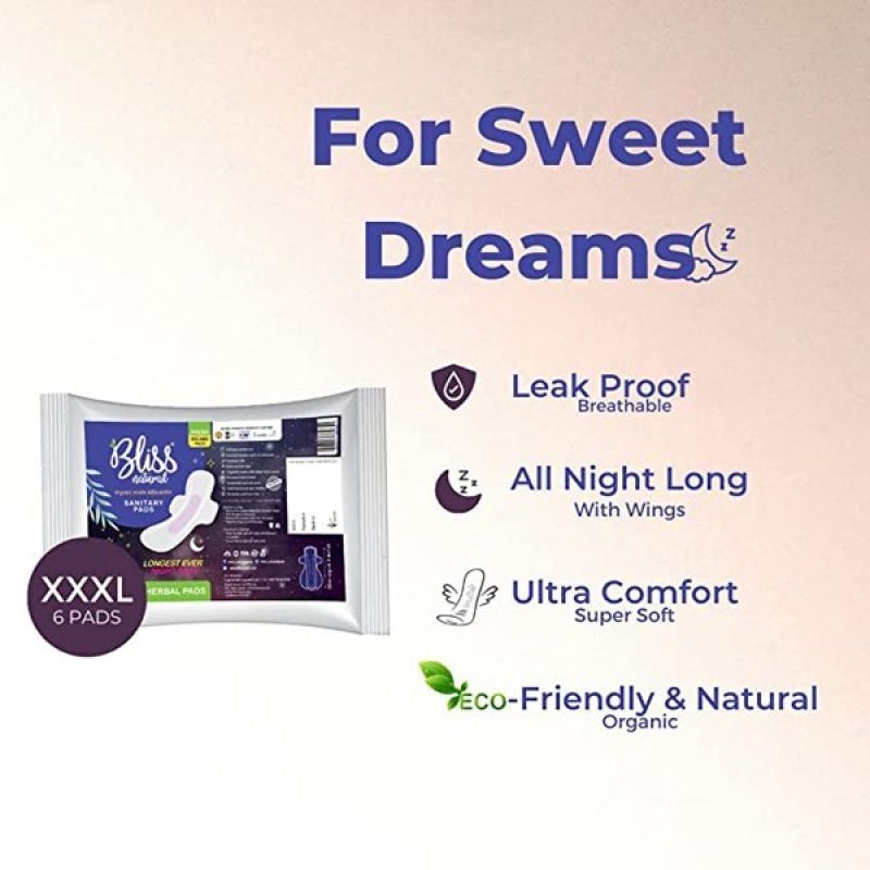 BLISS NATURAL UAE Organic Sanitary Napkin pads with wings for women