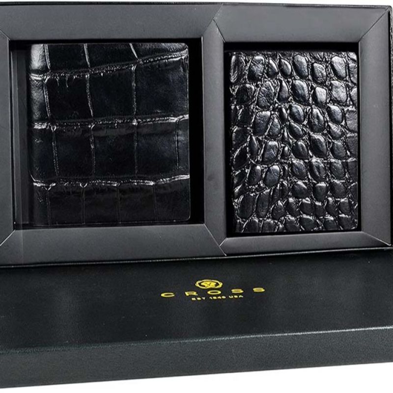 Classic Century Combo Men Slim Wallet + Folded ID Card Case Black