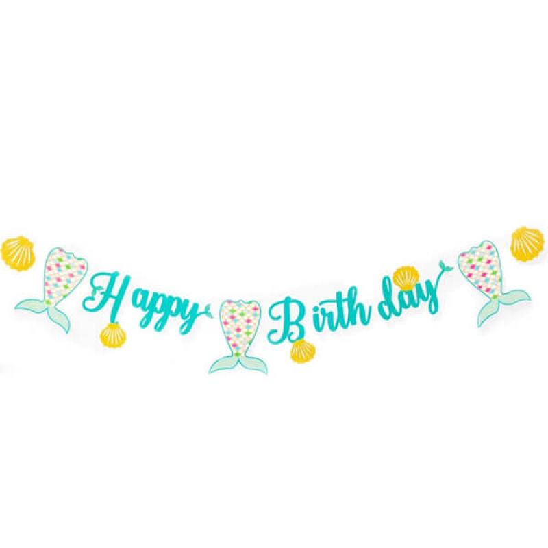 Happy Birthday Banner Mermaid Theme
