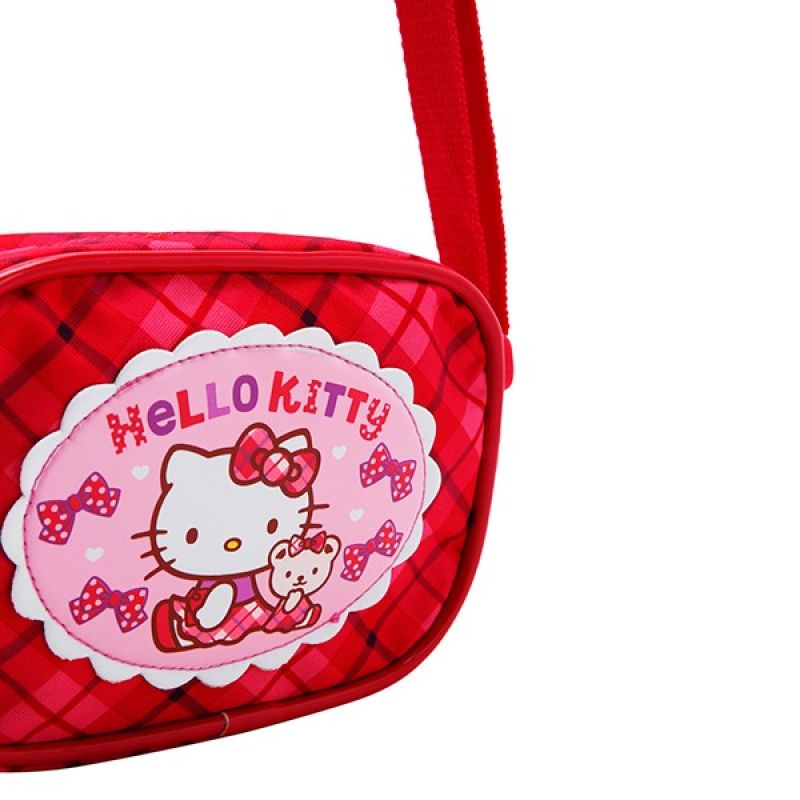 Hello Kitty Checks Pattern Ribbon Shoulder Bag, Travel Bag, Accessories Bag, Pink