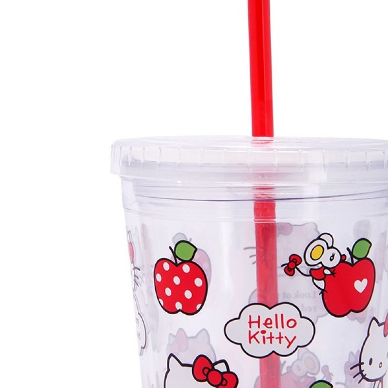Hello Kitty Leak Proof Straw Cup, Clear, Apple KT Logo Printed 450 ml
