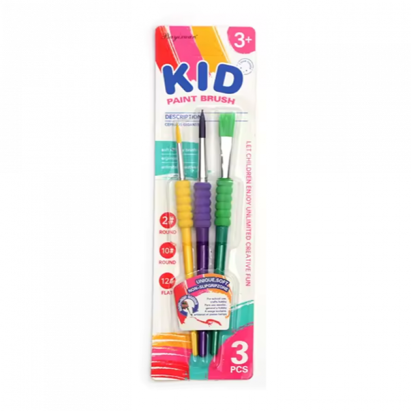 Kid Paint Brush Soft, Non slip Grip 3pcs