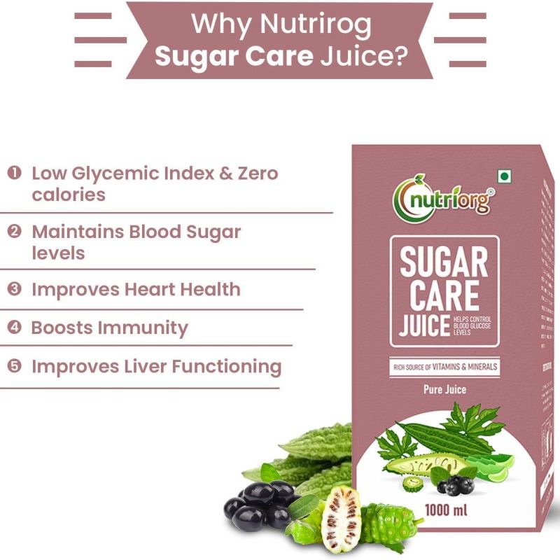 പാവയ്ക്ക (കരേല), ബ്ലാക്ക് പ്ലം (ജാമുൻ), ഹരദ്, ഇന്ത്യൻ നെല്ലിക്ക (നെല്ലിക്ക), ബഹേഡ, ജിംനെമ സിൽവസ്ട്രെ (ഗുർമർ), അലോവറ ജ്യൂസ് എന്നിവയുടെ സവിശേഷ സംയോജനമാണ് ന്യൂട്രിയോർഗ് ഷുഗർ കെയർ ജ്യൂസ്