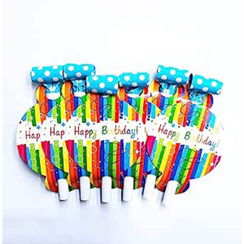 Pack Of 6 Birthday Blowout Whistle Noisemakers 12x8cm