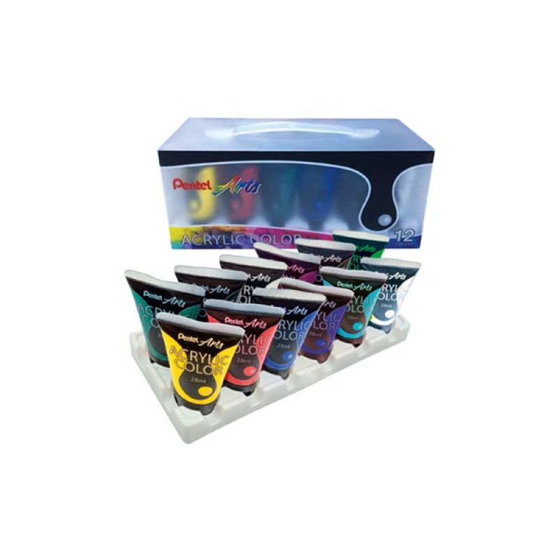 Pentel Acrylic Col 28 ml Set=12 Cols