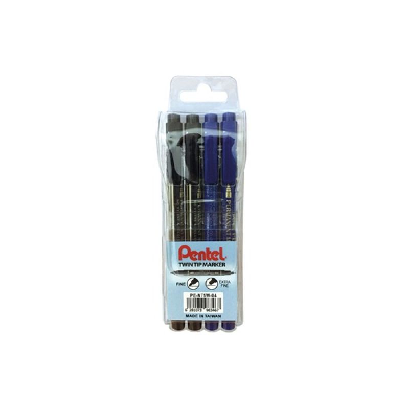 Pentel Twin Tip Marker Wallet =4pcs 2BE + 2BK