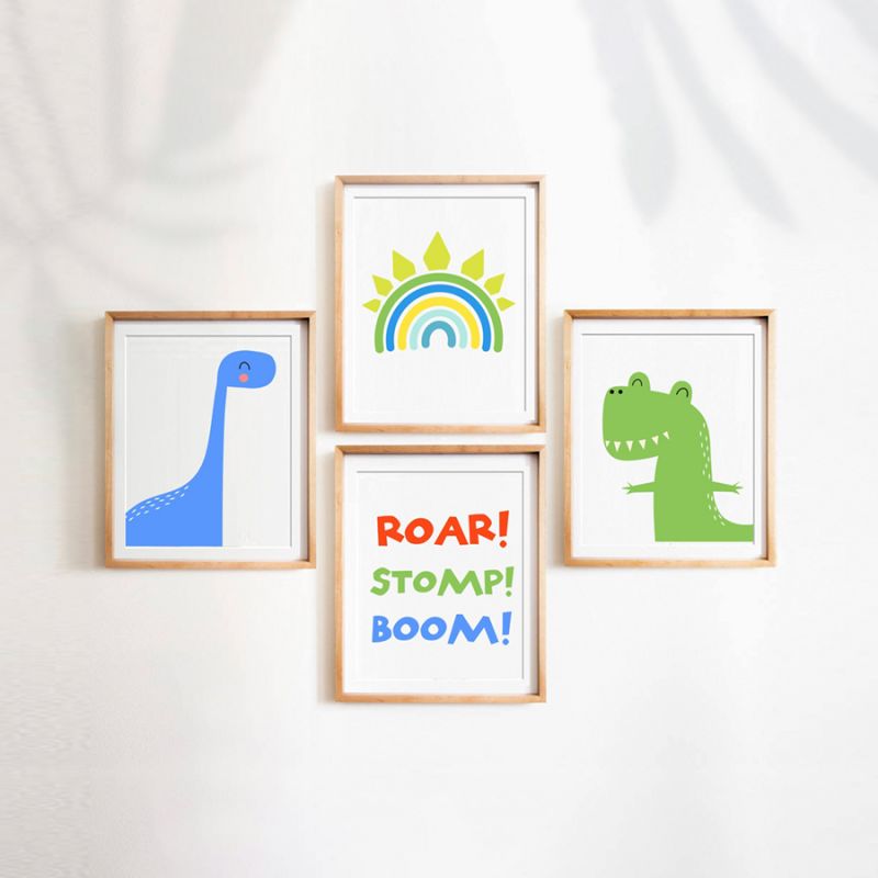Set of 4 Dinosaur Rainbow Wall Art Prints