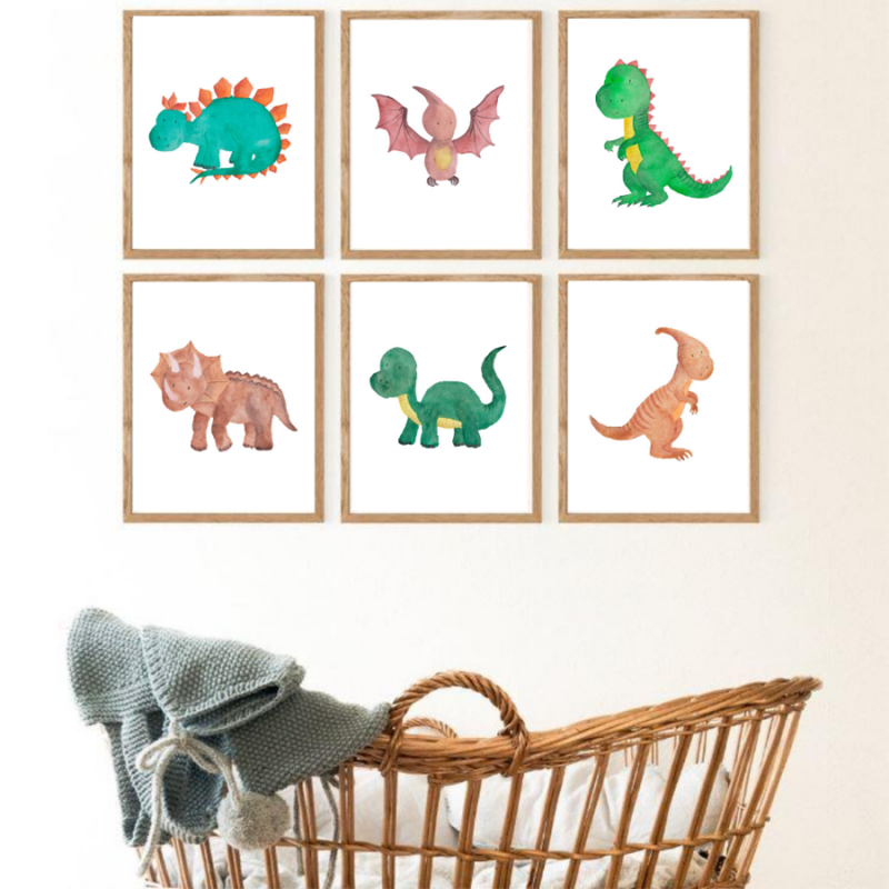 Set of 6 Dinosaur Watercolour Wall Art Prints