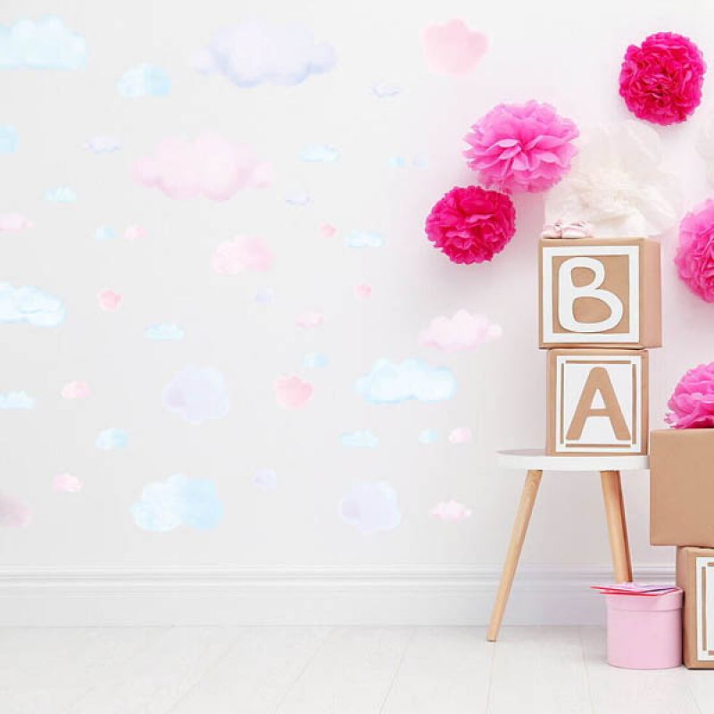 Watercolour Rainbow Clouds - set of 38 wall stickers