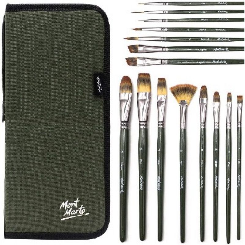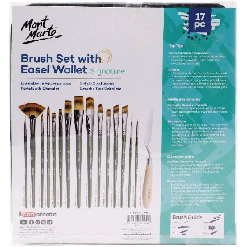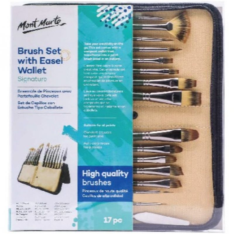 Mont Marte Brush Set W/Easel Wallet 17Pcs