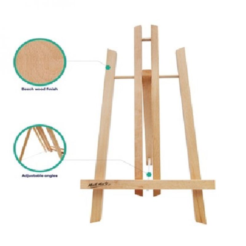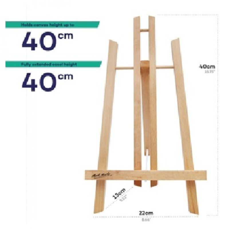 Transform your artwork with Mont Marte Table Top Display Easel Medium for showcasing your artwork or framing your canvas. This compact and strong wooden easel is designed to sit securely on any flat floor, making it an easy-to-set-up easel or canvas exhibition space. It's a remarkable choice for artists who opt to work at a table as well as an ample space to display your finished art project. The adjustable ledge is 40 cm in height, and its compact design makes it smooth to store and deliver. Crafted with quality, this desk easel is both an aesthetic and fashionable addition to your art projects, offering a strong platform for all levels of artists