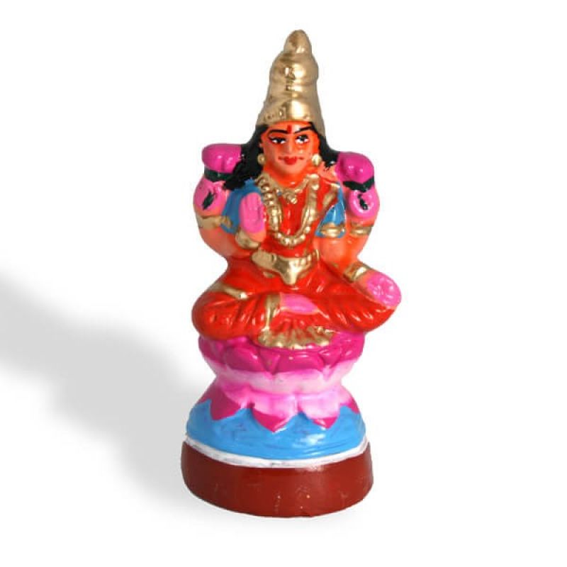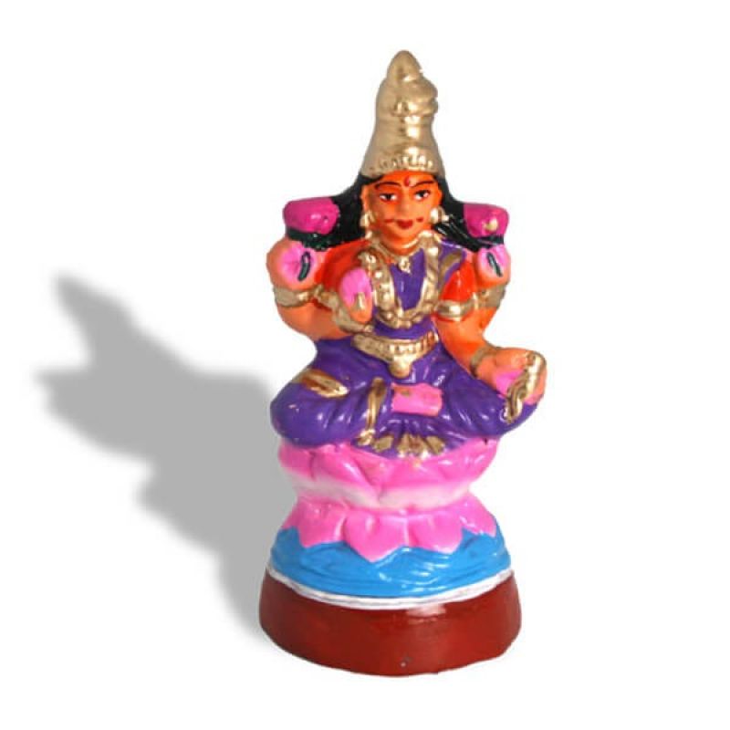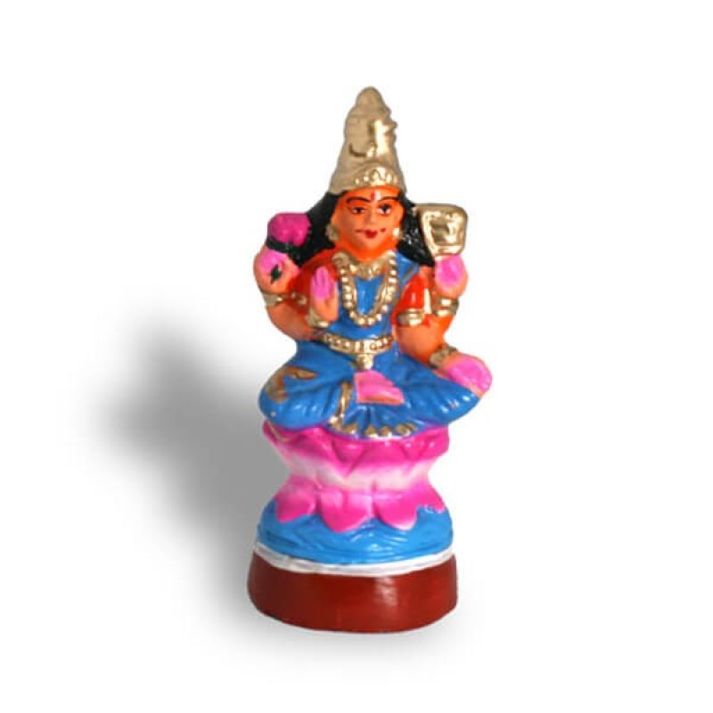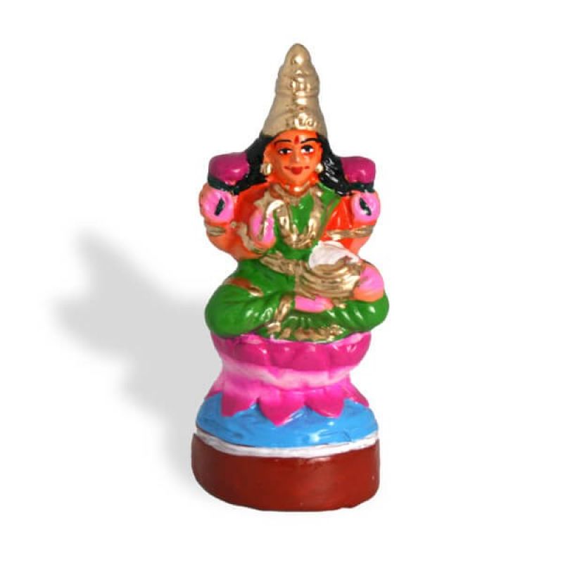 The Golu Dolls Ashta Lakshmi-goddess sitting on a lotus flower is a stunning piece of art that represents the eight forms of Goddess Lakshmi, the Hindu goddess of wealth and prosperity. The navarathri golu doll is crafted with intricate details and is designed to sit on a lotus flower, symbolizing purity and divinity. The golu doll is perfect for those who seek blessings for wealth, health, and prosperity. This Golu Dolls Ashta Lakshmi goddess sitting on a lotus flower is an ideal gift for those who appreciate Hindu mythology and culture.