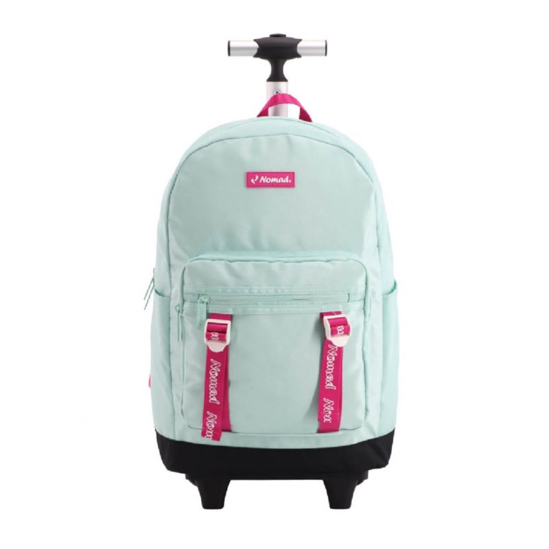 Glide through your day with the Nomad Rolling Backpack in Mint Breeze! This isn't just a backpack; it's your personal command center, designed for the go-getter who wants style and substance. Rocking a refreshing mint blue hue with pops of playful pink, this bag screams 'effortless cool'.