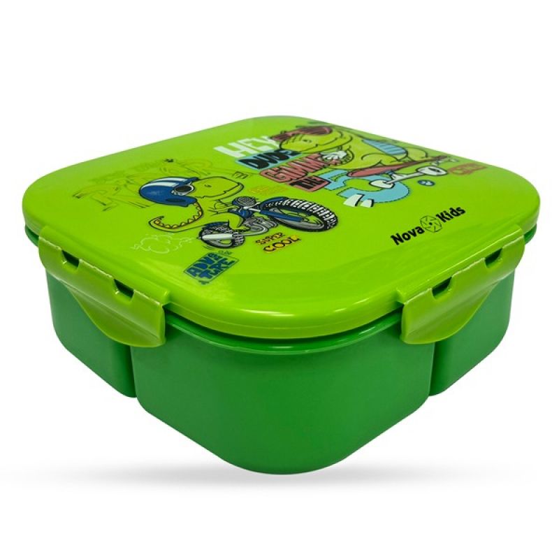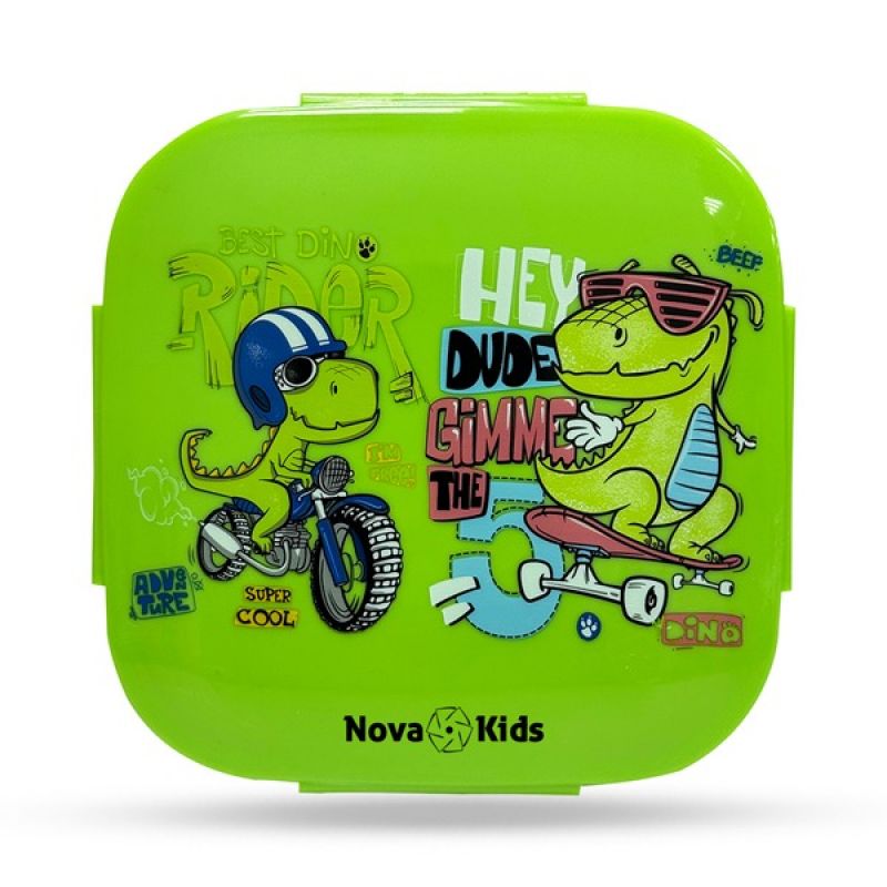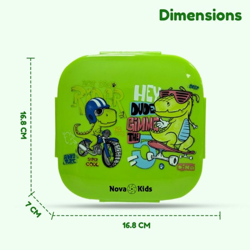 Nova Kids Square 1000ml Bento Lunch Box - T - Rex Green