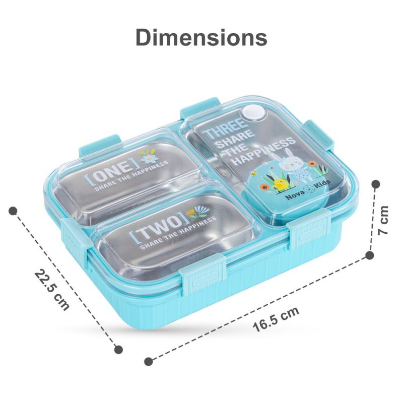 Upgrade your child's lunchtime with the Nova Kids Stainless Steel 3 Compartment Bento Lunch Box with Spoon & Fork Set! Designed for busy school days, this clever lunch box features a removable stainless steel tray, a crystal-clear lid, and three compartments to keep meals neatly separated. Plus, it comes complete with a matching stainless steel spoon and fork—making it the perfect all-in-one solution for fresh, healthy lunches. Built for everyday use, this lunch box is crafted with a durable food-grade plastic outer box and a high-quality stainless steel inner tray. It’s BPA-free, leakproof, and dishwasher-safe (without the lid), giving parents total peace of mind. The innovative design even lets you fill the base with warm water to help keep meals cozy and delicious until lunchtime. With a secure 6-clasp locking system, spills and messes are one less thing to worry about! Weighing just 445g and holding up to 800ml, it’s lightweight yet spacious enough for school lunches, picnics, or outings. Its compact size (22.5 x 16.5 x 7 cm) fits perfectly in school bags, while the clear lid lets kids easily spot their favorite treats. Safe, stylish, and super practical, the Nova Kids Bento Lunch Box is a must-have for every little foodie on the go! Specifications: Product Weight(kg): 0.445 Packing Weight(kg): 0.445 Product Dimensions(cm): 22.5*16.5*7 Packing Dimensions(cm): 22.5*16.5*7 Capacity : 0.8L Material: PP+ Stainless Steel+ Silicone What’s Included: 1* Nova Kids Stainless Steel 3 Compartment Bento Lunch Box 1* Spoon & Fork Set