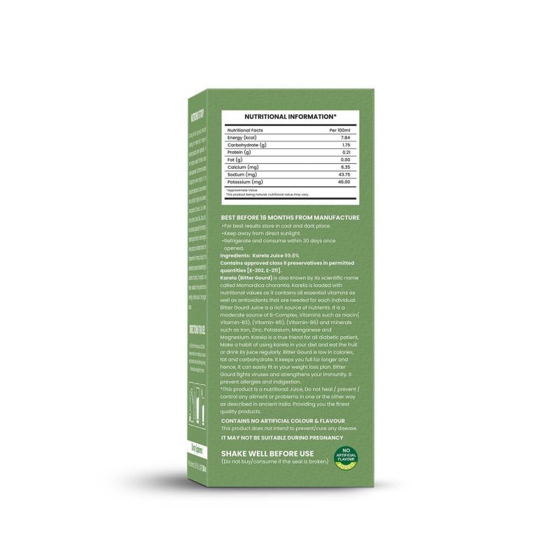//php include('more-sellers.php'); ?>Bitter Gourd which is also known as ‘Karela’ in Hindi is a great solution to deal with a number of bodily problems. This also helps to build immunity and glucose levels in in check. The Nutriorg Bitter Gourd Juice assists in the reduction of acne, blemishes and deep skin infections. The free radicals in it possess anti-ageing properties. Nutriorg’s Bitter Gourd Juice in combination with Nutriorg Amla Juice is advisable to achieve evident results