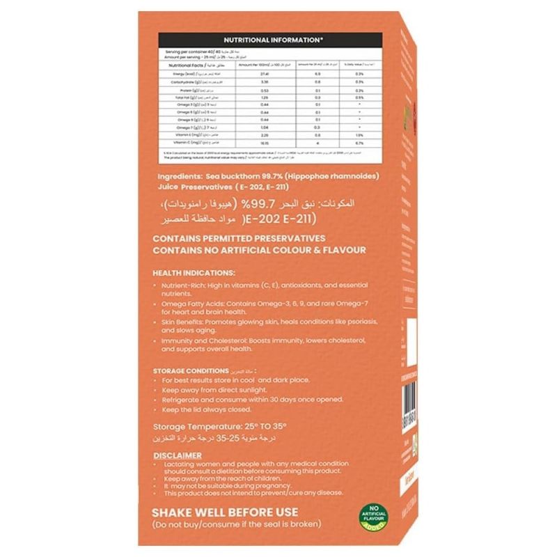 • Nutriorg Seabuckthorn (Himalayan Berry) Juice is extracted from 100% fresh fruits no concentrated.