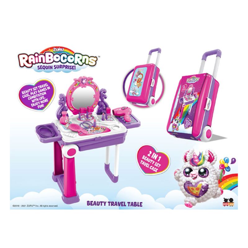 Immerse your little ones in a world of creativity and fun with the Rainbocorns 3-in-1 Make-Up Play Set. This versatile playset doubles as a suitcase and a delightful makeup table, complete with a miniature comb, hair dryer, perfume bottle, and mirror. Crafted from high-quality BPA-free plastic, it's both safe and durable, providing endless hours of imaginative play for kids.