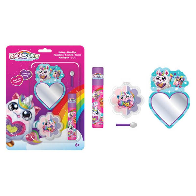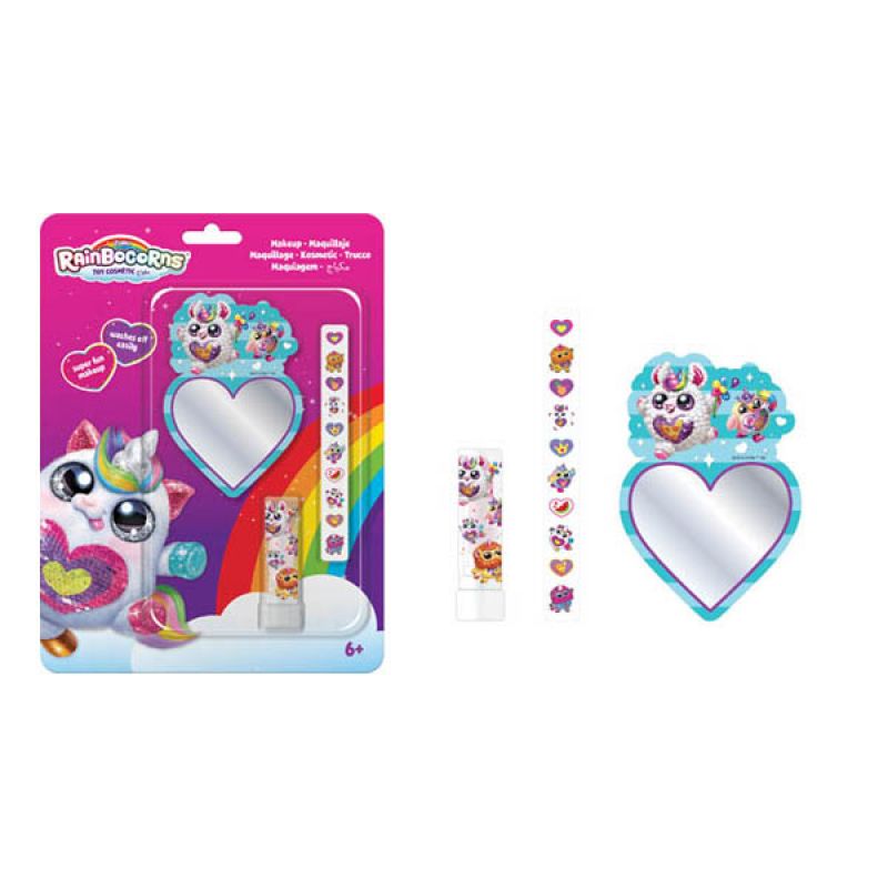Rainbocorns make-up set features toy cosmetic sets with 3 assortments. This combo make-up set includes 3 different combinations of kids' make-up toy products. Every Rainbocorns kid friendly makeup set contains