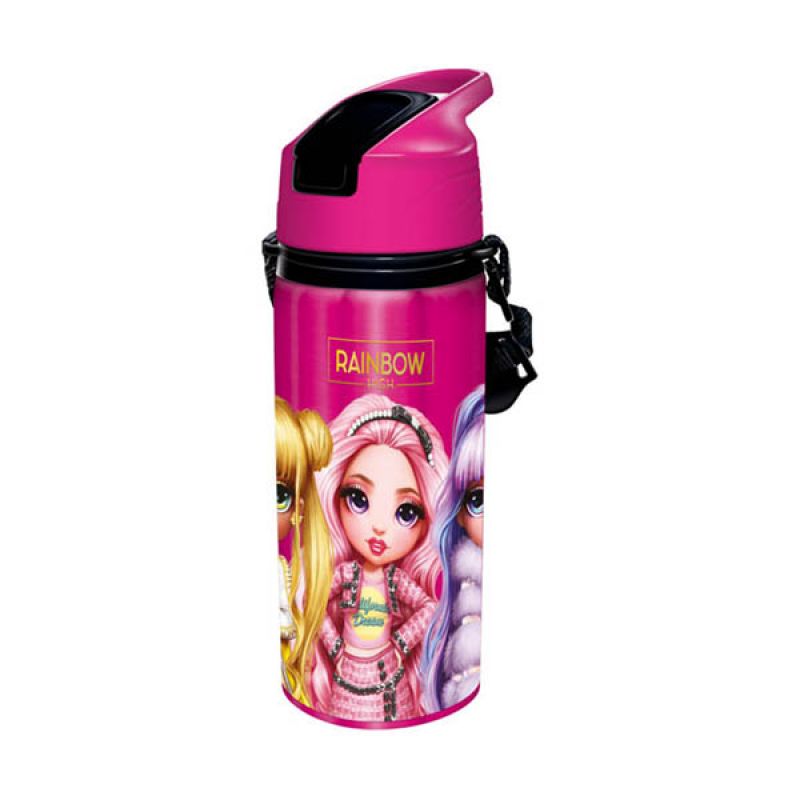 The Rainbow High Stainless Water Bottle showcases a captivating crimson design, featuring Rainbow High cartoon prints. With a 600ML capacity and insulation for temperature maintenance, it includes a pull-up strap and hanging belt for handy carrying. Perfect for enthusiasts of Rainbow High, this durable and elegant bottle gives a convenient way to stay hydrated, representing the colorful and vibrant world of Rainbow High. With its durable and sleek construction, it is perfect for outdoor activities like picnics, traveling, hiking, etc.