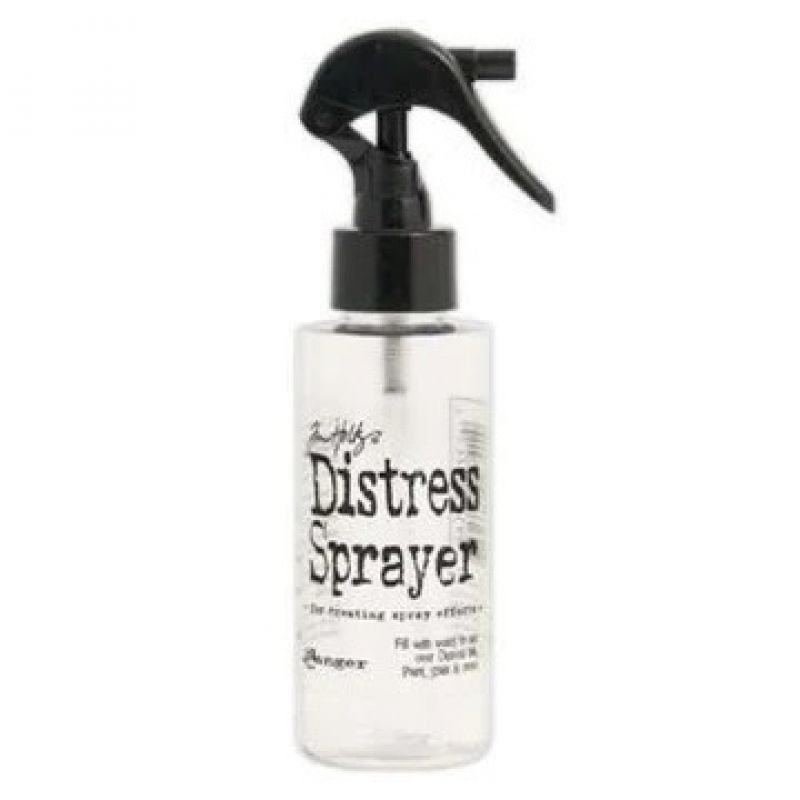 The new Tim Holtz® Distress Sprayer is the perfect Distress tool for creating spray effects. Use to spray water over Distress Ink, Paint, Stain and more to create water droplets and various sprayed water effects. The convenient trigger sprayer allows for quick and easy coverage or squeeze half way to create water droplets. For convenient storage and worry-free travel, the Distress Sprayer features a locking trigger button.