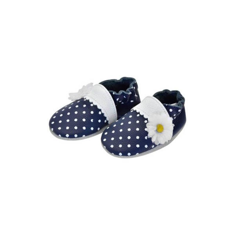Rose et Chocolat Classic baby boy shoes Polka Dot Daisy Navy