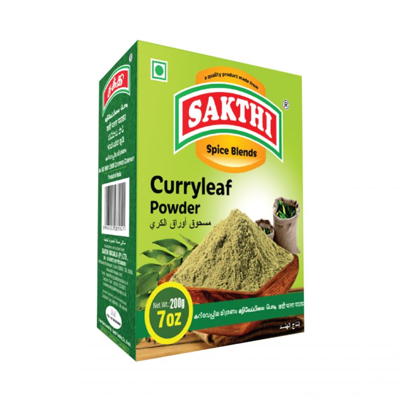 Sakthi Curryleaf Powder is a unique and aromatic spice blend made from roasted curry leaves and a mix of other spices such as cumin, coriander, and chili. This 200g pack of Sakthi Curryleaf Powder is perfect for those who love the distinct flavor of curry leaves in their dishes. The powder can be used to add flavor to various dishes such as curries, soups, stews, and even as a seasoning for roasted vegetables. The unique blend of spices in Sakthi Curryleaf Powder adds a rich and earthy flavor to any dish it is added to. The spice blend is easy to use and can be added to the dish while cooking or used as a garnish. Sakthi Curryleaf Powder is a must-have in every kitchen, especially for those who love experimenting with new and unique flavors.