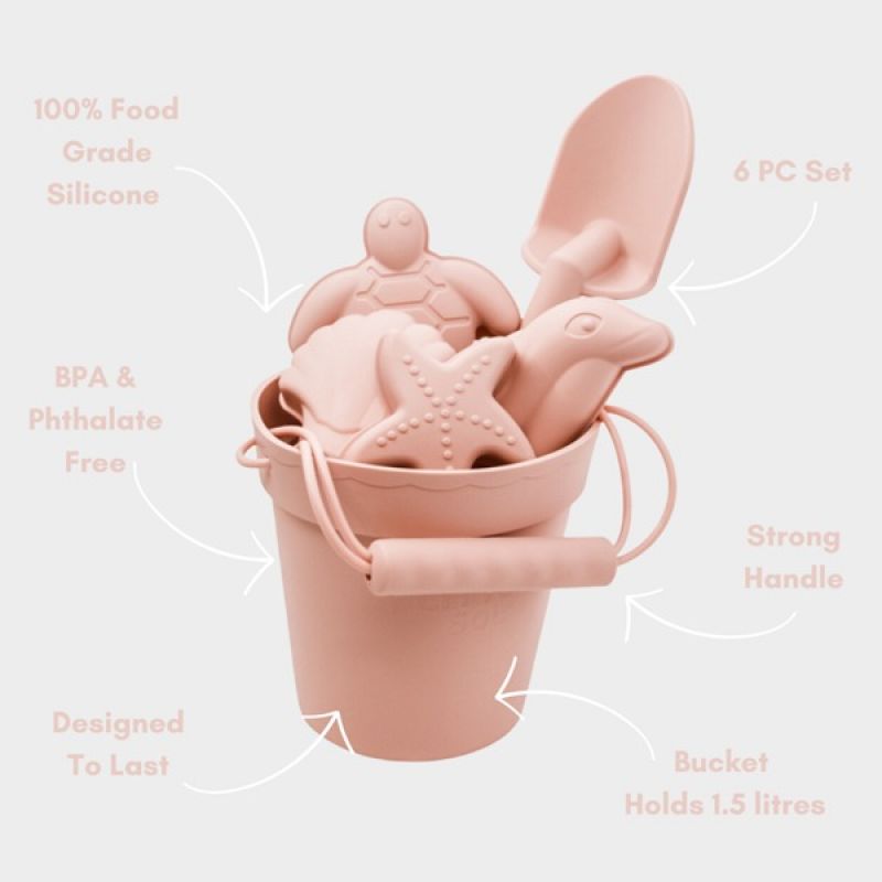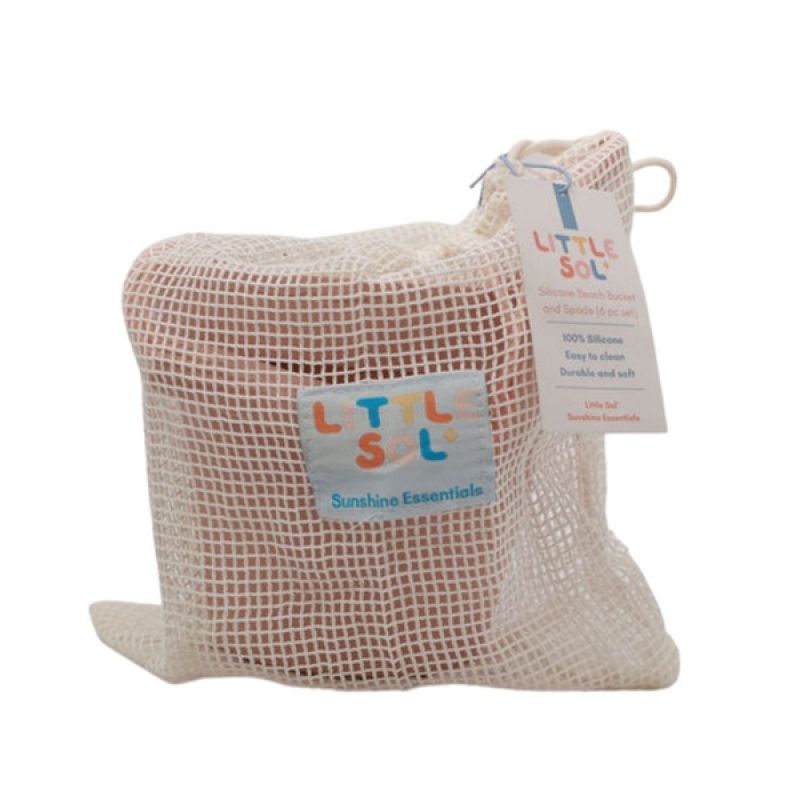 Sol+ Sunshine Essentials Have fun in the sun with our silicone beach buckets. The perfect addition to your outdoor adventures! Lightweight, soft and durable, making it easy for children to carry, collect shells, build sandcastles, or carry water to make sand sculptures. The bucket holds 1.5 liters and rolls up to easily fit in your bag. Sea-themed sand molds and an easy grip spade - perfect for little hands. No more broken plastic beach toys, thanks to our durable BPA, Phthalate & Lead-Free silicone, which is also recyclable. When you're done for the day, simply rinse the bucket set with water and it will be ready to use again for the next adventure. Includes 1 x Bucket 1 x Spade 4 x Sea Molds 1 x Cotton Mesh Carry Bag Measurements Bucket: H14 / D10 cm Spade: L22 / W6.5 cm Molds: D8cm Little Sol+ is a sustainable lifestyle brand for children. Our products are the perfect accessories for your children while they enjoy hours of play and fun.  |