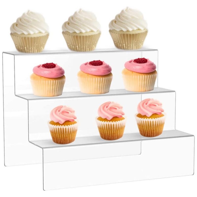 உயர்தர, உணவு-பாதுகாப்பான அக்ரிலிக் இருந்து வடிவமைக்கப்பட்ட இந்த நிலைப்பாடு உறுதியானது, சுத்தம் செய்ய எளிதானது மற்றும் நீடிக்கும் வகையில் கட்டப்பட்டது. அதன் மூன்று அடுக்கு அமைப்பு கப்கேக்குகள், பேஸ்ட்ரிகள், மினி கேக்குகள் அல்லது அலங்கார பொருட்களைக் காண்பிக்க போதுமான இடத்தை வழங்குகிறது, இது திருமணங்கள், பிறந்தநாள், குழந்தை மழை, பேக்கரிகள், கஃபேக்கள் மற்றும் கார்ப்பரேட் நிகழ்வுகளுக்கு ஏற்றதாக அமைகிறது.