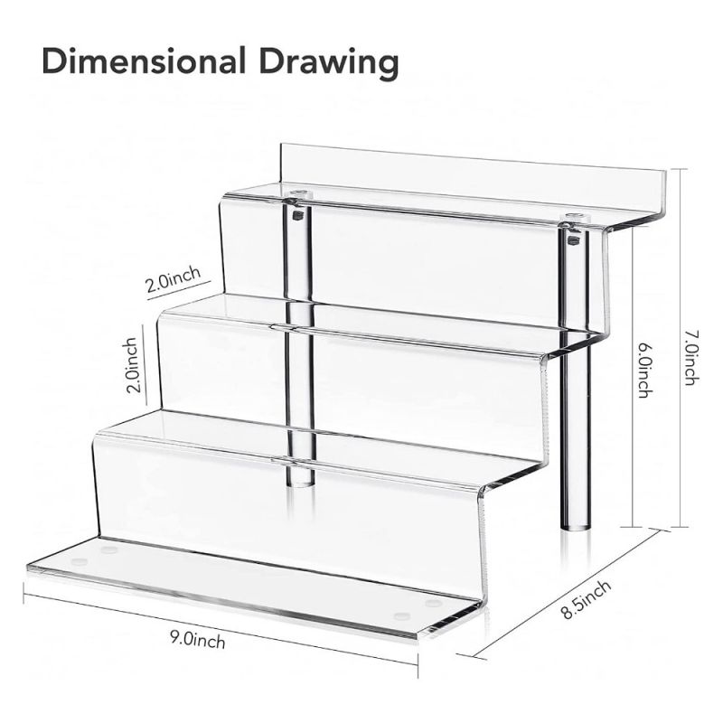 பிரீமியம் தரமான தெளிவான அக்ரிலிக்கிலிருந்து தயாரிக்கப்பட்ட இந்த நிலைப்பாடு விதிவிலக்கான தெளிவு மற்றும் நிலைத்தன்மையை வழங்குகிறது, உங்கள் வாசனை திரவிய பாட்டில்கள் அல்லது சேகரிப்புகள் பாதுகாப்பாகவும் பார்வைக்கு வேலைநிறுத்தமாகவும் இருப்பதை உறுதி செய்கிறது. நான்கு அடுக்கு படி வடிவமைப்பு ஒவ்வொரு பொருளுக்கும் சரியான தெரிவுநிலையை அளிக்கிறது, இது வாசனை திரவிய சேகரிப்புகள், அத்தியாவசிய எண்ணெய்கள், தோல் பராமரிப்பு தயாரிப்புகள் அல்லது ஆடம்பர அலங்கார துண்டுகளுக்கு ஏற்றதாக அமைகிறது.