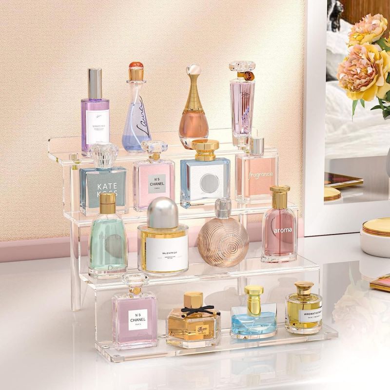 4 அடுக்கு வாசனை திரவிய அமைப்பாளரும் ஒரு சிறந்த இடத்தை சேமிக்கும் தீர்வாகும் - அதன் செங்குத்து அமைப்பு சுத்தமான, ஒழுங்கீனம் இல்லாத தோற்றத்தை பராமரிக்கும் போது காட்சிப் பகுதியை அதிகரிக்கிறது. வெளிப்படையான வடிவமைப்பு எந்தவொரு அலங்காரத்தையும் பூர்த்தி செய்கிறது, இது டிரஸ்ஸிங் டேபிள்கள், அழகு நிலையங்கள், பொட்டிக்குகள் மற்றும் சில்லறை கவுண்டர்களுக்கு ஏற்றதாக அமைகிறது.