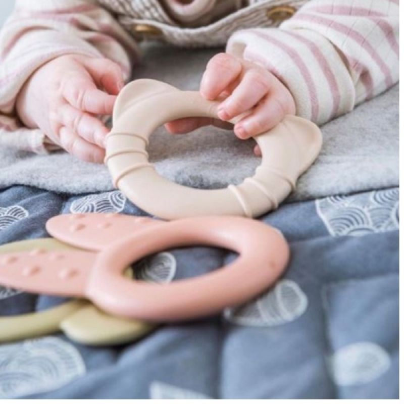 Bioplastic Tiny Teether Ring - Coral & Beige