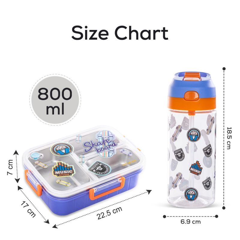 ஈஸி கிட்ஸ் 3 பெட்டி 800 மிலி துருப்பிடிக்காத ஸ்டீல் பெண்டோ மதிய உணவு பெட்டி w / தண்ணீர் பாட்டில் - ஸ்கேட் போர்டு ஊதா
