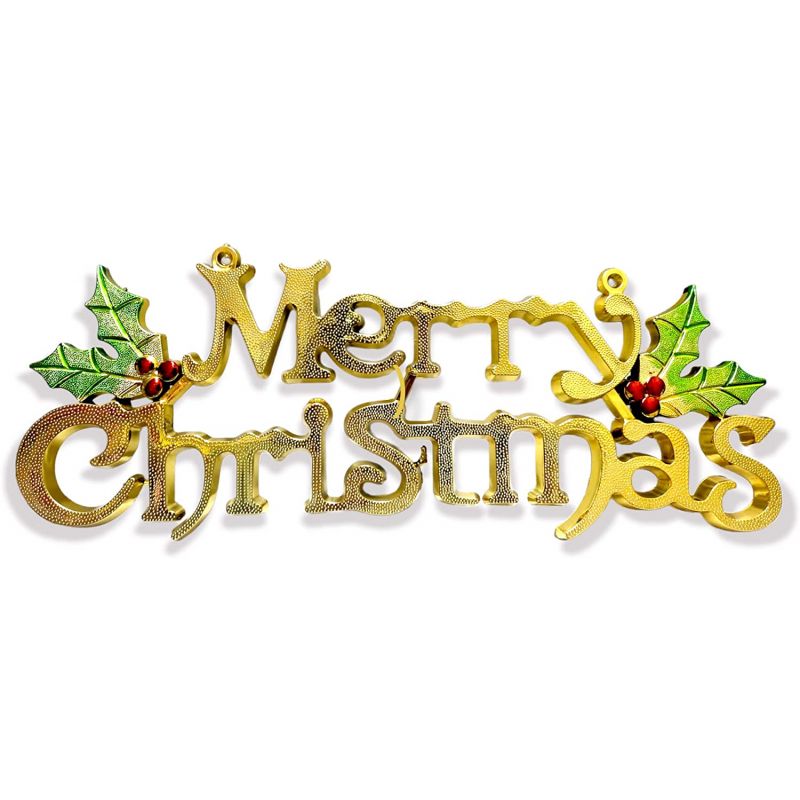தங்க மெர்ரி கிறிஸ்துமஸ் அறிகுறிகள், கிறிஸ்துமஸிற்கான அலங்கார தொங்கும் அறிகுறிகள் - ஹோலி பெர்ரிகளுடன் தங்க மினுமினுப்பு (14 அங்குலங்கள்)