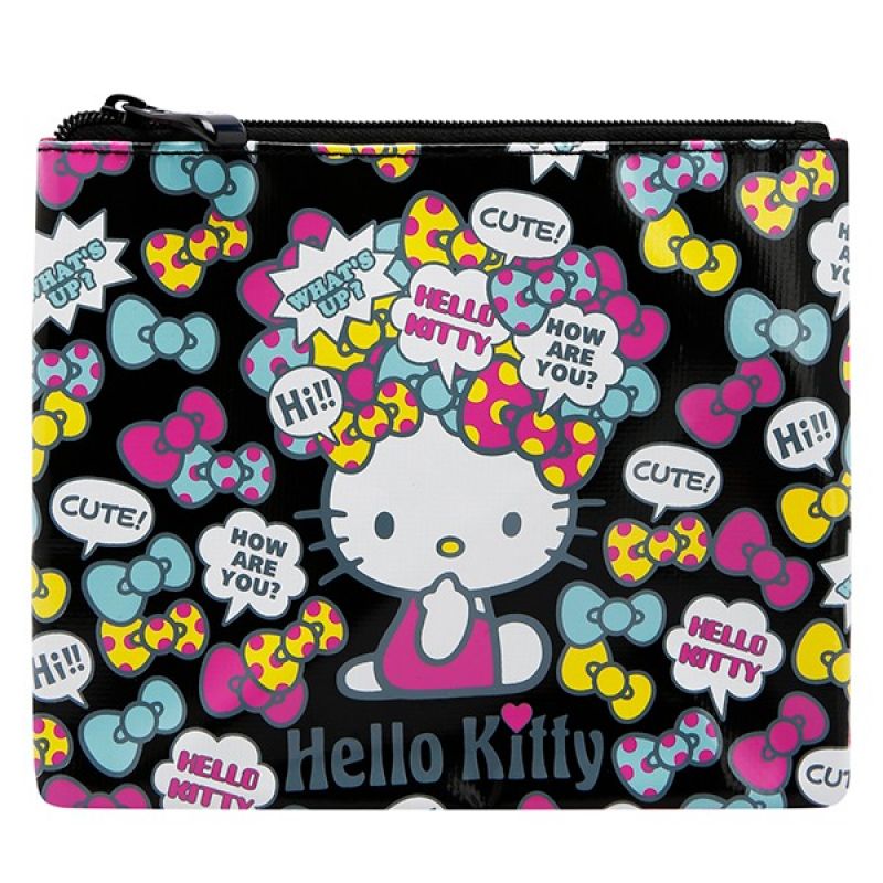 Hello Kitty Printed Zip Closure Flat Pouch, Travel Pouch, iPad Mini Case, Black