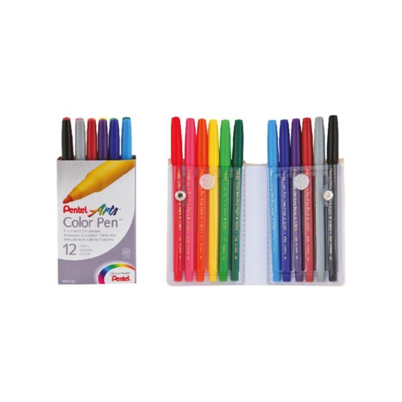 Pentel Color Pens Fibre Tip Set=12Col