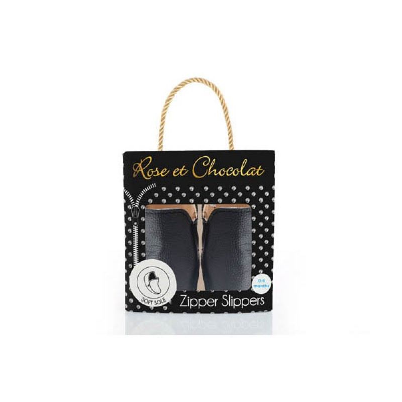 Rose et Chocolat Zipper Soft Soles Shoes Black