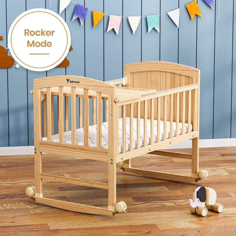 It comes with wheels to Move from bedroom to living room easily, Just fold the wheels it will become a Rocker or Just Remove the wheels base to make it a Beside Side Crib and further to a Toddler bed which is expendable 114cm to 159cm to make it a Kids bed or Sofa Bed and can bear up to 40Kg weight and it can be converted to Study table or Computer table when your kid is grown up so it will be always with your kid.