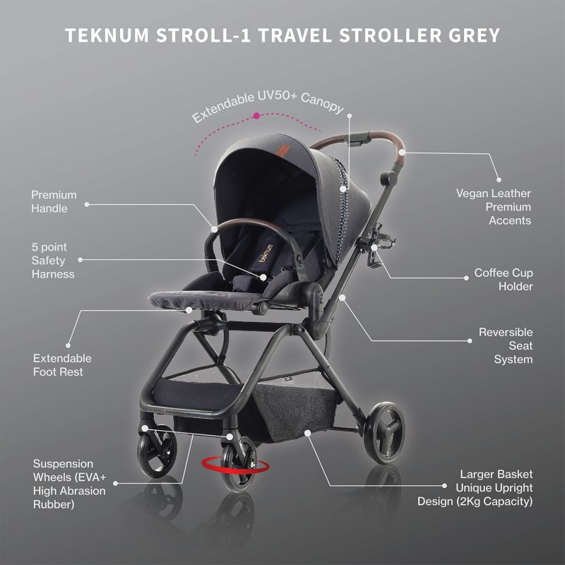 Teknum STROLL - 1 Reversible Travel Stroller - Grey