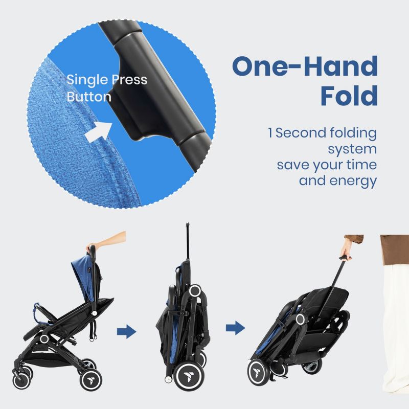 The Teknum Travel Cabin Stroller by SAMBOX is an absolute travel essential, providing total convenience without compromising on comfort or style. Whether you're on holidays, exploring the latest urban hotspot, or simply on the move, the Teknum Travel Cabin Stroller is perfectly in tune with the needs of modern parents, seat can be reclined as per need, Comes with Big Back window. The 5.5" front and 6" rear wheels of the Teknum Travel Cabin Stroller were cleverly designed to allow parents to confidently maneuver on different surfaces throughout their day. Boasting breathable fabric, your child will keep cool even on the hottest days, while a lightweight design makes strolling an absolute breeze. And for when it's time to travel, the unique compact Push Button folding mechanism reduces the stroller and easily fits in the Airplane cabin or Boot space of any Car or The Unique Push Trolley Handle makes it extra convenient to simply stroll. It perfect for exploring new places, near or far with 5 - point safety harness suitable for Kids from 0 months to approximately 4 years (up to 22 Kg / 48 Lbs.).