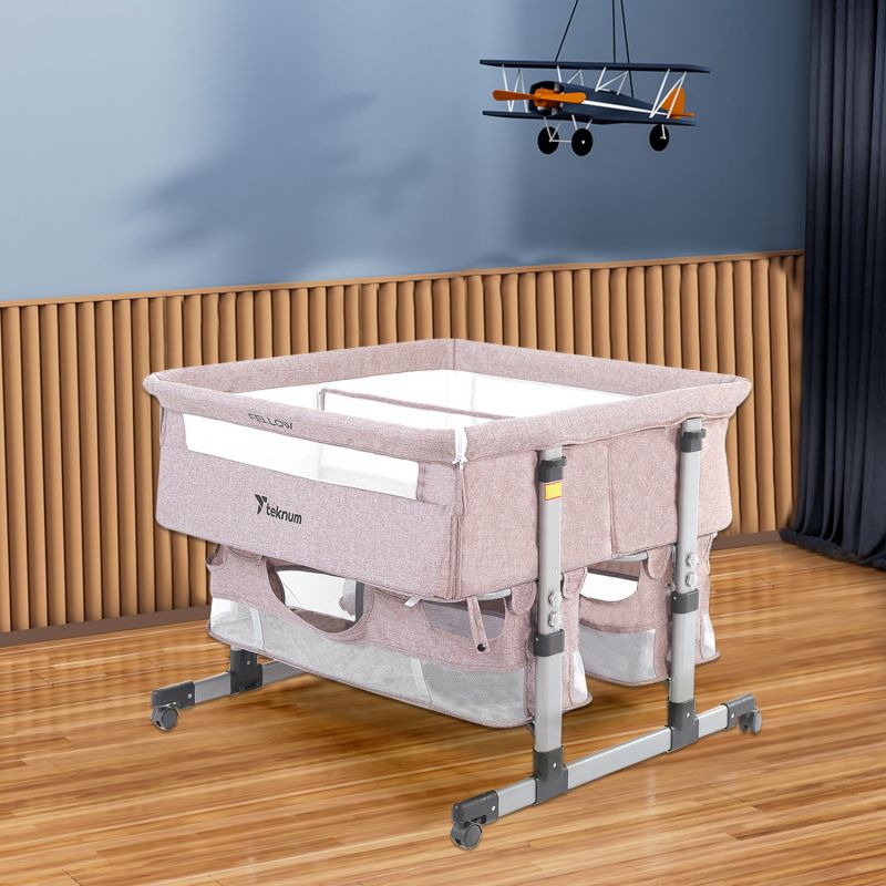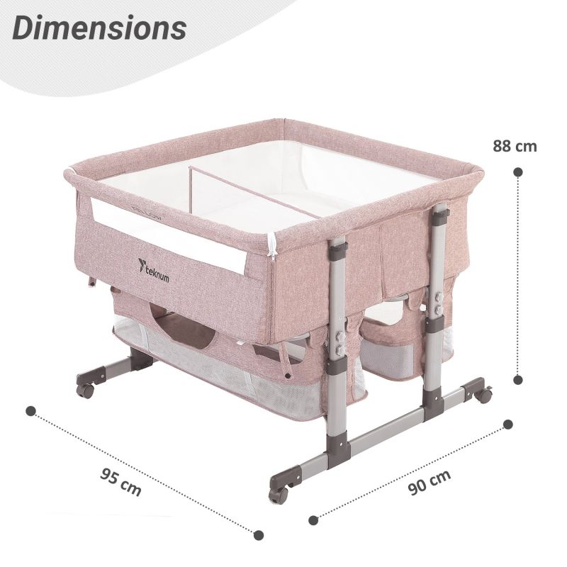 Teknum Twin Bed Side Fellow by SAMBOX is the best for both mum and Twin baby. The Newborn recognizes mum with the mother's scent and breathing sound. This Twin Bed Side Fellow Crib can conveniently be placed next to the bed and lock wheels, so it doesn't move.